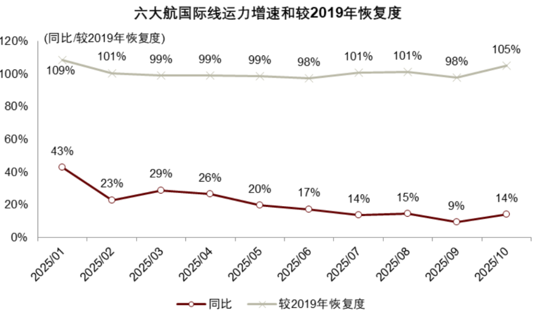 图表5:2025年全行业国际线运力投放高增速,对飞机利用率提升作用较大