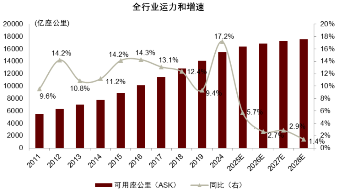 ASK增速:2026年预计为2.7%,主要由机队增长贡献