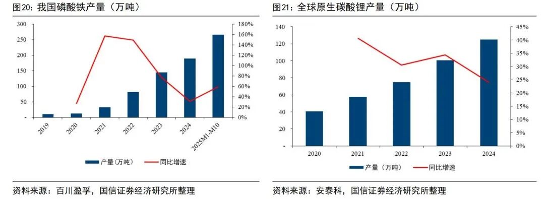 新能源领域碳酸锂同样为高耗酸产品。同样受新能源车及储能市场驱动,全球碳酸锂需求同样以较高速度增长。2024年全球碳酸锂产量为125万吨,同比增长22.21%。锂辉石及锂云母制备碳酸锂时均需要消耗大量硫酸,碳酸锂产量高增持续带来硫酸需求增量。
