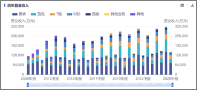 从业务来看,九牧王业务核心是#男装,具体包括:男裤、茄克、衬衫等。其中,超一半(2025年上半年,收入占比51.28%)的业务为男裤。
