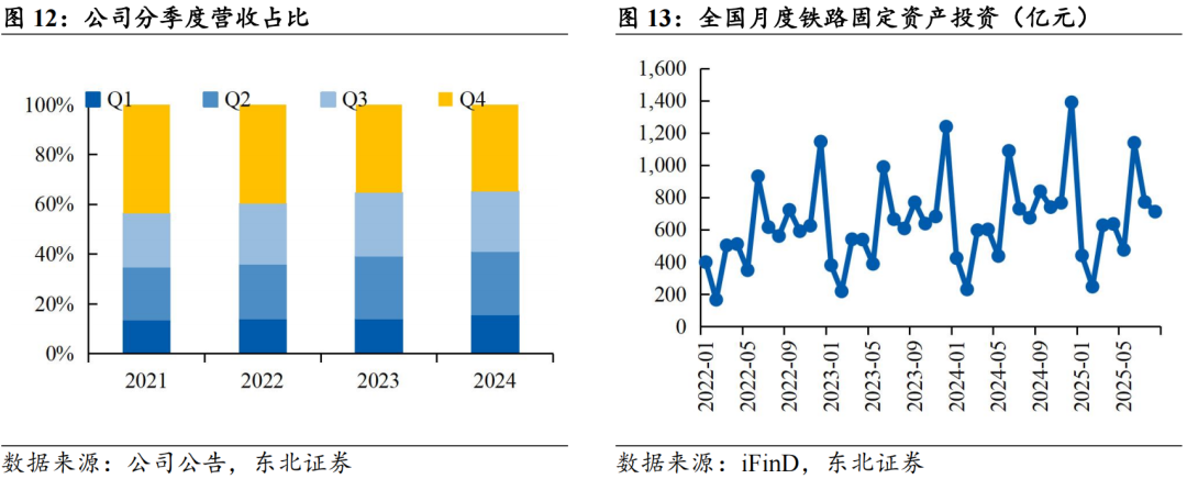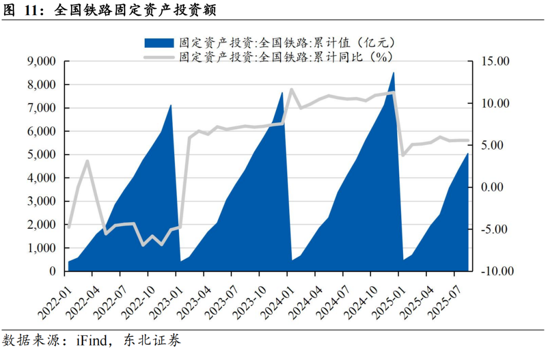 跨年与跨季的节拍错位是行业的常态,因而同口径的高频数据是解释公司季节性波动的关键。 2025年1—8月铁路FAI为5041亿元(同比 5.6%),施工组织、联调与验收往往在下半年集中释放,导致板块公司收入/现金流“前低后高”的季度形态;分析时应以国铁FAI、在建项目通车节点与城轨开通计划做联动观察。