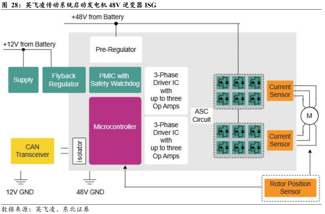 主驱来看,A级乘用车主要使用750V IGBT。目前,新能源汽车电池平台主要为400V,A00、物流车、大巴使用650V/1200V IGBT,A级乘用车使用750V IGBT。为实现快充,越来越多汽车厂商开始使用800V架构。对于新能源汽车而言,随着电压平台的提升,IGBT的耐压等级也需要相应提高,以确保系统的安全性和稳定性。目前市场主流的400V高压平台采用传统的硅基IGBT作为核心,耐压等级区间在750V以下,无法匹配800V需要。解决方案是将IGBT模块的电压升级到750V以上或者采用SiC模块。