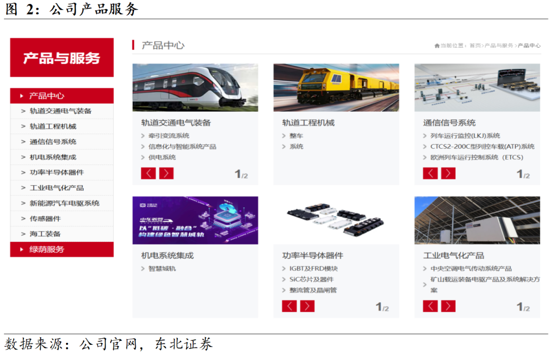 公司为轨交装备平台型企业。作为全球轨道交通和新能源行业的领先企业,时代电气始终坚持科技创新和高质量发展,以“成为交通与能源领域电气 系统全面解决方案的全球首选供应商和世界一流专业领军示范企业”为目标,构建了涵盖“基础器件—装置与系统—整 机与工程”的完整产业链体系。公司业务覆盖轨道交通、新能源发电、电力电子器件等9大领域,在全球20多个国家和地区建立了完善的供销服务体系。