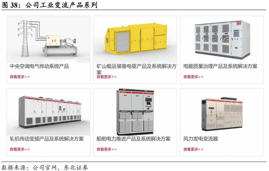 工业变流目前应用于暖通、冶金、矿山、新能源发电等领域。工业变流通过电力电子器件实现电能变换和控制,为工业装备提供绿色、安全、高效、可靠的核心动力。目前公司的工业变流产品应用于暖通、冶金、矿山、新能源发电等领域,包括风电变流器、光伏逆变器、EPC设备,已进入大部分风电客户。