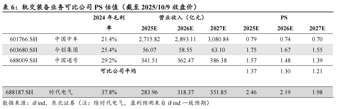 公司为轨道系统综合性解决方案提供者,主业为轨交装备,并以此衍生出新兴装备业务,总体景气度仍依照轨交周期。中国中车、金创集团和中国通号均为国内轨交行业龙头,与公司业务具备一定可比性,选取为可比公司。参考中国中车等企业的PE或PS指标较为合理,2025-2027年平均PE分别为15.39/14.13/12.77,2025-2027年平均PS分别为1.37/1.30/1.21。其中,中国中车、金创集团和中国通号2024年毛利率分别为21.4%、25.4%和29.2%。