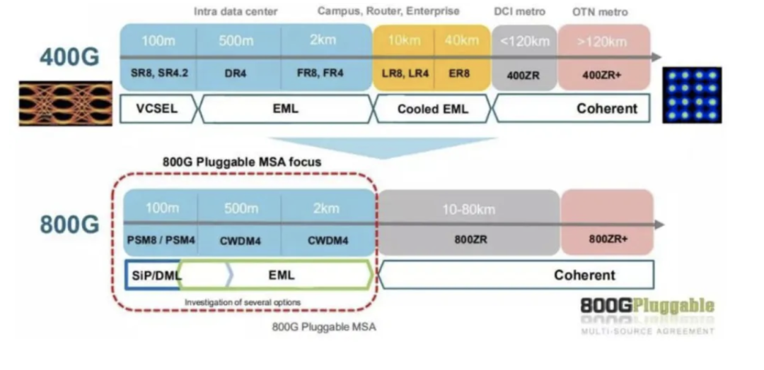 800G模块主要存在EML调制器方案与硅光 CW光源方案两条路径。