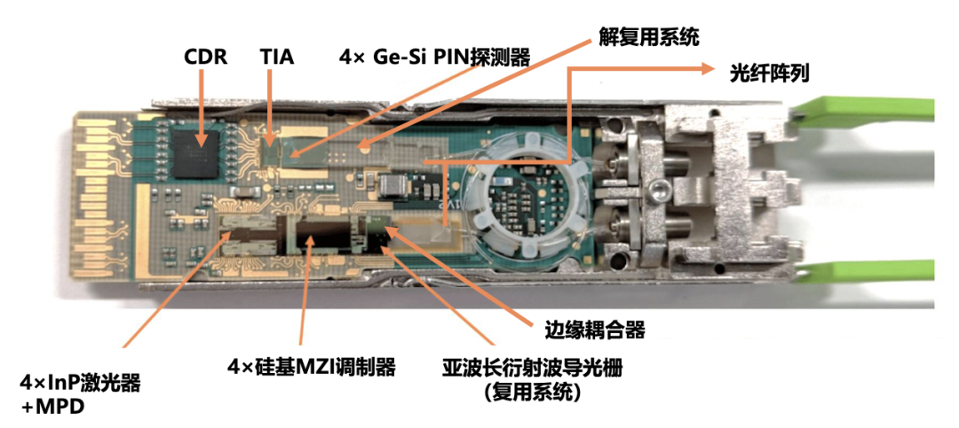 Intel 100G QSFP28 CWDM4硅光模块结构: