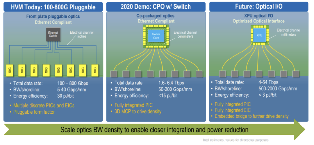硅光技术三大使用场景:可插拔光模块、CPO及OpticalI/O
