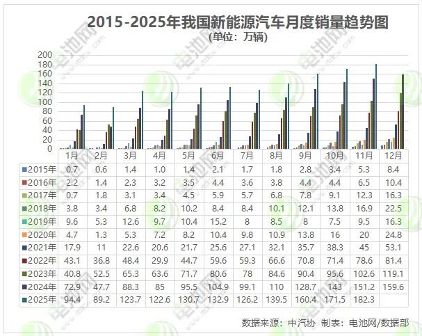 新能源汽车方面,11月,新能源汽车产销分别完成188万辆和182.3万辆,同比分别增长20%和20.6%,新能源汽车新车销量达到汽车新车总销量的53.2%。
