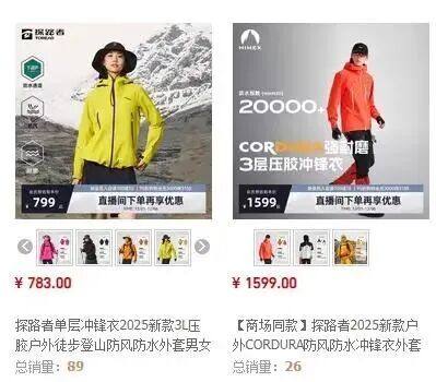 在始祖鸟、萨洛蒙等国际品牌占据高端市场,凯乐石、骆驼分割中低端份额的格局下,探路者市场份额大幅度下滑。在电商平台上,公司千元以上产品销量更不乐观,有沦为行业边缘化角色的风险。