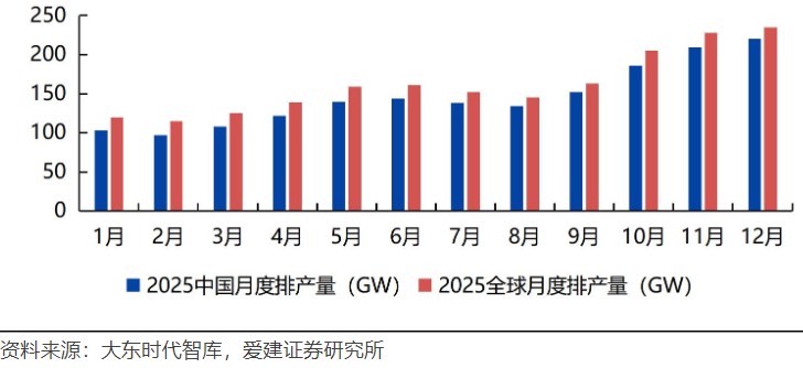 据大东时代智库(TD)预测,2025年12月中国市场动力 储能 消费类电池排产量220GWh,环比增长5.3%,其中储能电芯排产占比约为35.3%;2025年12月全球市场动力、储能、消费类电池排产量235GWh,环比增长3.1%,动力电池排产阶段性承压,而储能电池则延续高增长态势,预计明年一季度淡季不淡。
