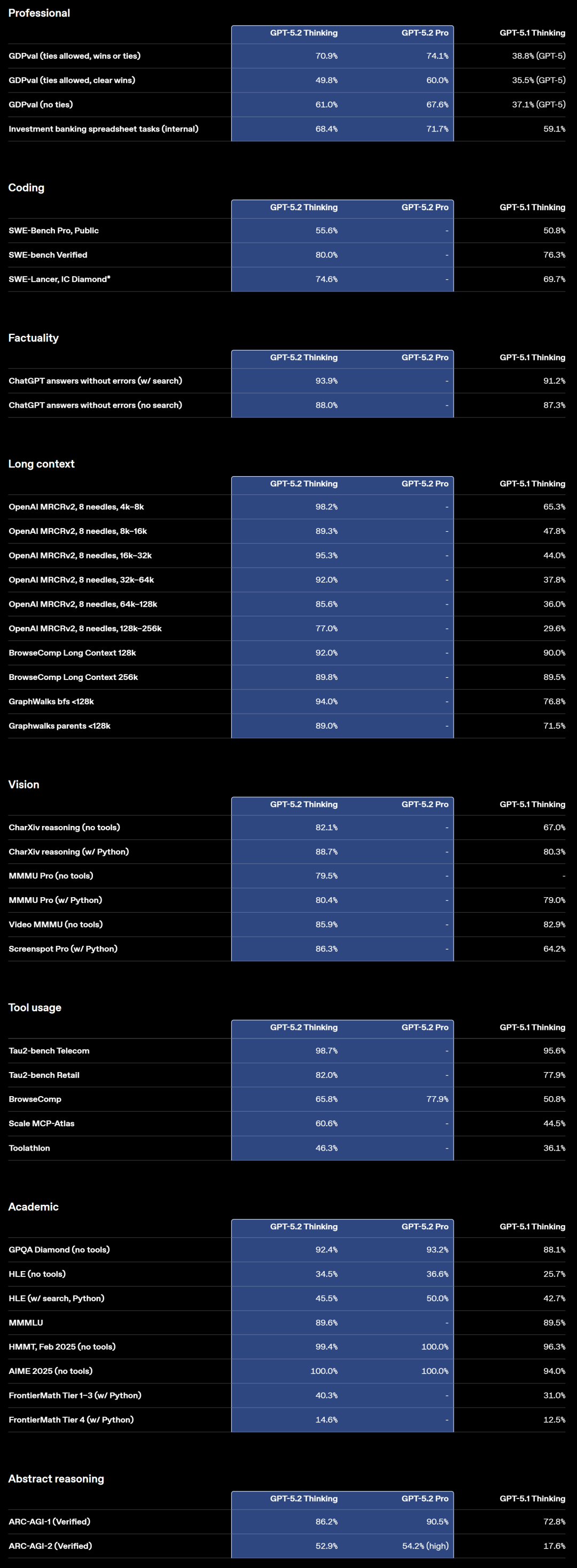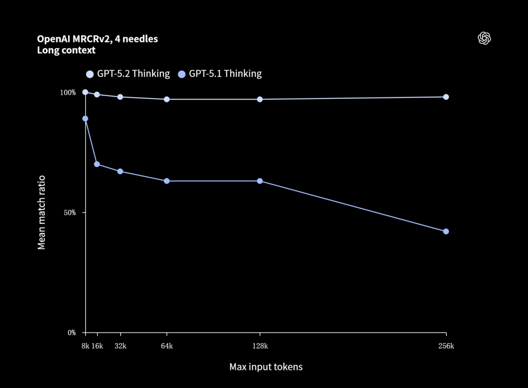 在长上下文推理方面,GPT‑5.2 Thinking树立了新的行业标准。