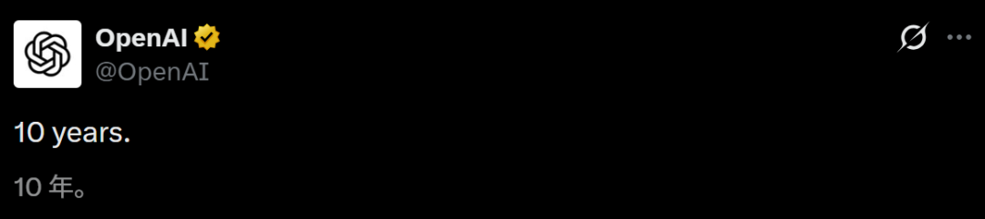 奥特曼表示,「过去的十年非常精彩,OpenAI的工作比我想象的还要特别」。