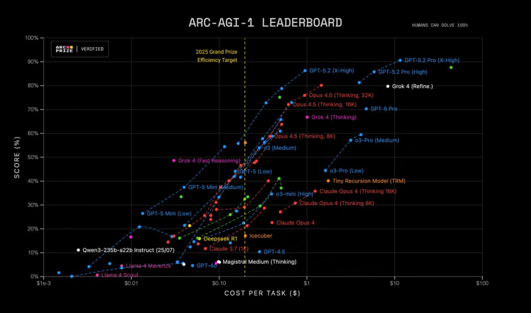 ARC-AGI-2:GPT-5.2 Pro以52.9%的绝对优势登顶全球第一;