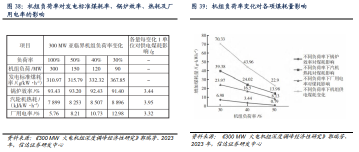 煤电调峰负荷压降程度的增加,带来供电煤耗上升,对冲火电利用小时数下降的部分影响,且煤耗增速随负荷下降而进一步加快。随着新能源装机规模逐步扩大,电力系统对火电机组的兜底保障和调峰能力提出了更高要求。根据《300 MW 火电机组深度调峰经济性研究》中的测算结果,火电机组在参与深度调峰过程中,随着负荷压降程度的增加,供电煤耗呈现明显上升趋势,且煤耗增速随负荷下降而进一步加快。例如,当机组负荷率由50%分别降至40%和30%时,供电煤耗分别增加约16.54 g/kWh和52.06 g/kWh,反映出负荷越低,能耗上升幅度越大。随着调峰负荷压降程度的增加,煤耗增速随负荷下降而进一步加快,可对冲火电利用小时数下降的部分影响。