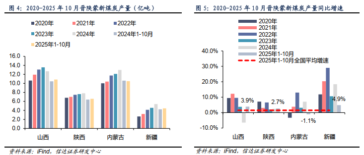 山西省2025年1-10月产量同比增长3.9%,增量贡献最为突出。我们认为,这主要源于2024年同期受安监强化等因素导致产量基数较低,形成了显著的恢复性增长。