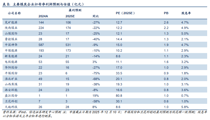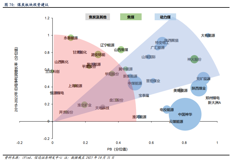 结合我们对能源产能周期的研判,站在当下煤炭PPI位于周期性底部区间、市场流动性充裕、风险溢价上修的环境下,煤炭板块具备“反内卷”属性且属于尚未充分反映盈利修复预期的板块,即,优质煤炭企业向下调整有高股息安全边际支撑,向上弹性有后续煤价上涨和估值修复催化,板块仍具有中长期战略性的投资机遇,维持行业“看好”评级。自上而下重点关注:一是经营稳定、业绩稳健的中国神华、陕西煤业、中煤能源、天地科技;二是具有估值性价比且弹性较大的兖矿能源、新集能源、电投能源、神火股份、广汇能源等;三是全球资源特殊稀缺的优质冶金煤公司山西焦煤、平煤股份、潞安环能、盘江股份等;同时建议关注兖煤澳大利亚、兰花科创、天玛智控、甘肃能化等。