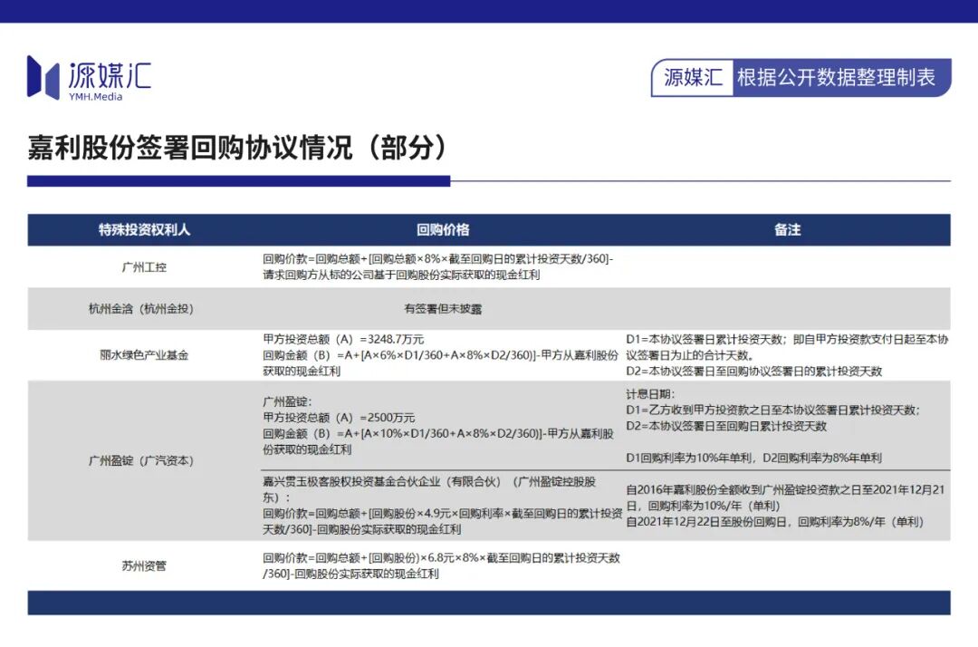 其中,除实控人黄玉琦外,嘉利股份与广汽集团、广州工控、杭州金投、丽水绿色产业基金前五大股东均签署协议,明确回购价格,回购计息利率在6%-10%。