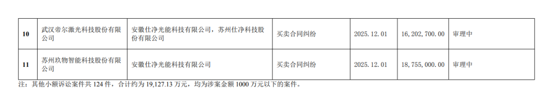 持续亏损后,仕净科技的债务问题也不暴露出来,拿不到钱的设备供应商等走上了诉讼、仲裁的途径。据观察,仕净科技及其子公司作为被告涉及的122起诉讼、仲裁案大部分发生于2025年。