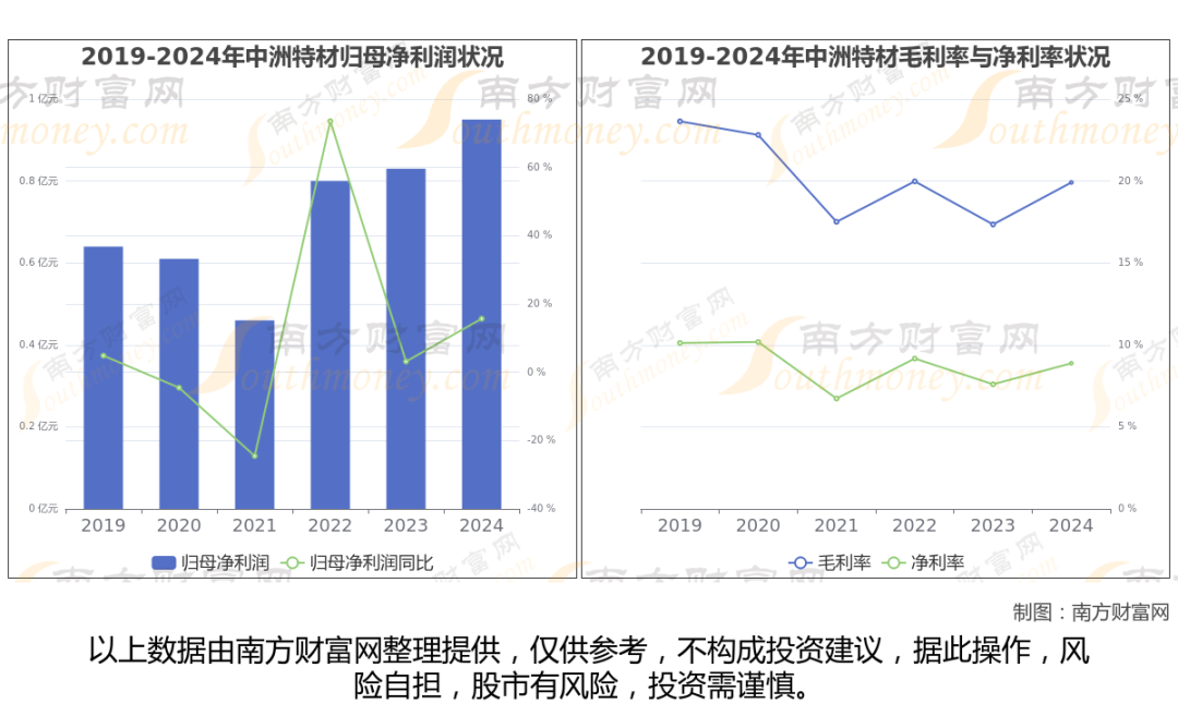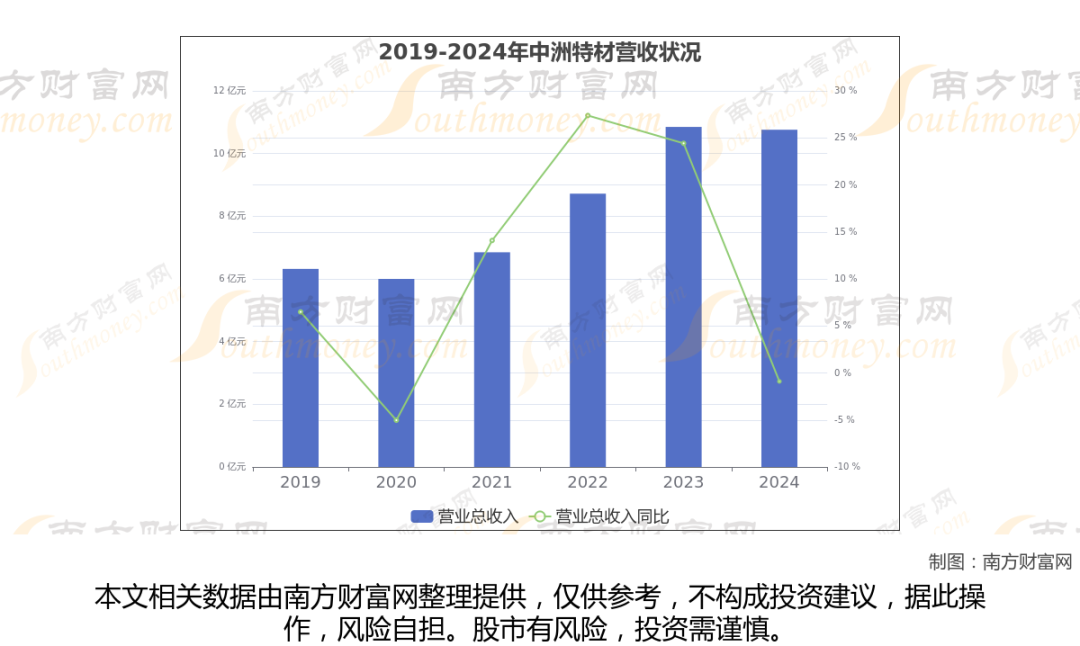 中洲特材2024年数据显示(如上图),公司2024年营业收入10.76亿,同比增长-0.9%,近五年复合年增长率15.7%。
