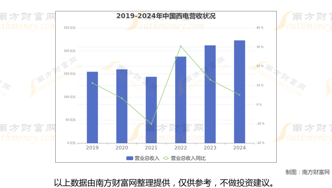 中国西电2024年数据显示(如上图),公司2024年营业收入222.81亿,同比增长5.07%,近五年复合年增长率8.64%。