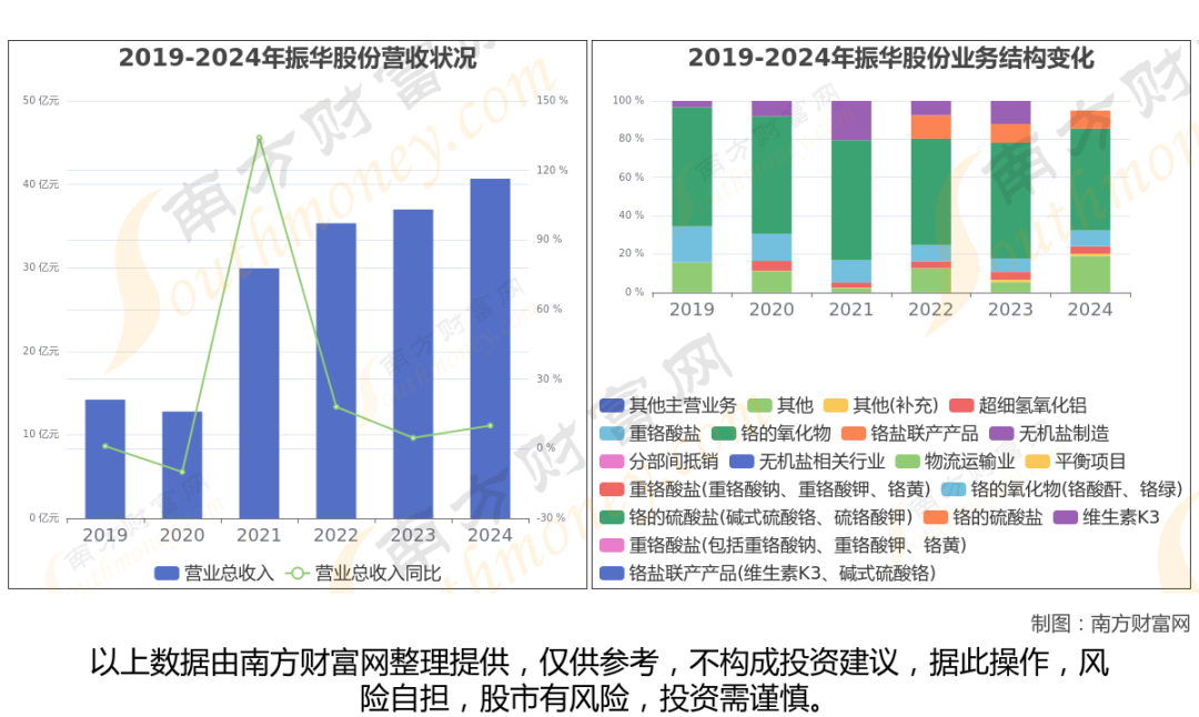 振华股份于2016年9月13日在上海证券交易所上市,公司主营业务为铬化学品、维生素K3等铬盐联产产品、超细氢氧化铝等铬盐副产品的研发、制造与销售。