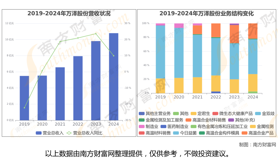 万泽股份于1994年1月10日在深圳证券交易所上市,公司主营业务为微生态活菌产品、高温合金及其制品的研发、生产及销售。