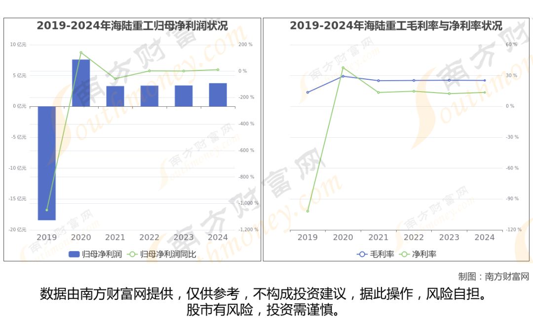 数据显示(如上图),海陆重工2024年营业收入为27.89亿,同比增长-0.23%,近5年复合年增长率8.33%。