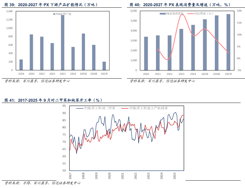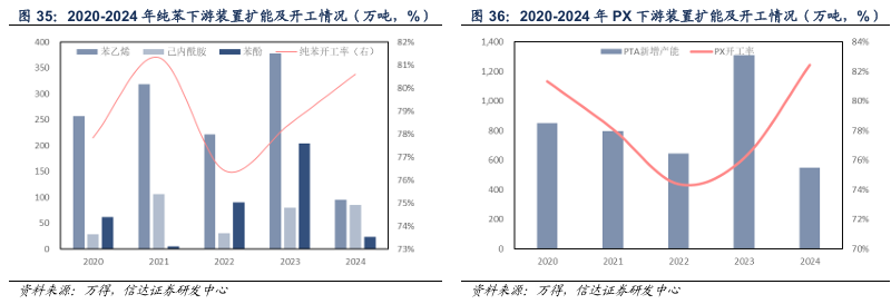 芳烃下游扩能带动芳烃产品开工负荷提升。纯苯和PX作为下游化工品生产的中间产品,其直接需求主要来自下游化工装置。我们统计了纯苯主要下游产品苯乙烯、己内酰胺、苯酚等历史产能增量和PX下游PTA产品的历史产能增量,并与纯苯和PX开工负荷进行比较,从过去历史芳烃下游增量产能和芳烃开工率来看,下游扩能将刺激芳烃需求进而提升芳烃开工负荷。