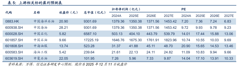投资建议:上游开采方面,我们重点推荐红利属性凸显的中国海油/中国海洋石油(600938.SH/0883.HK)、中国石油(601857.SH)、中国石化(600028.SH);业绩正逐步兑现的油服企业中海油服(601808.SH)、海油工程(600583.SH);原油产量成长空间较大的民营企业中曼石油(603619.SH)等。
