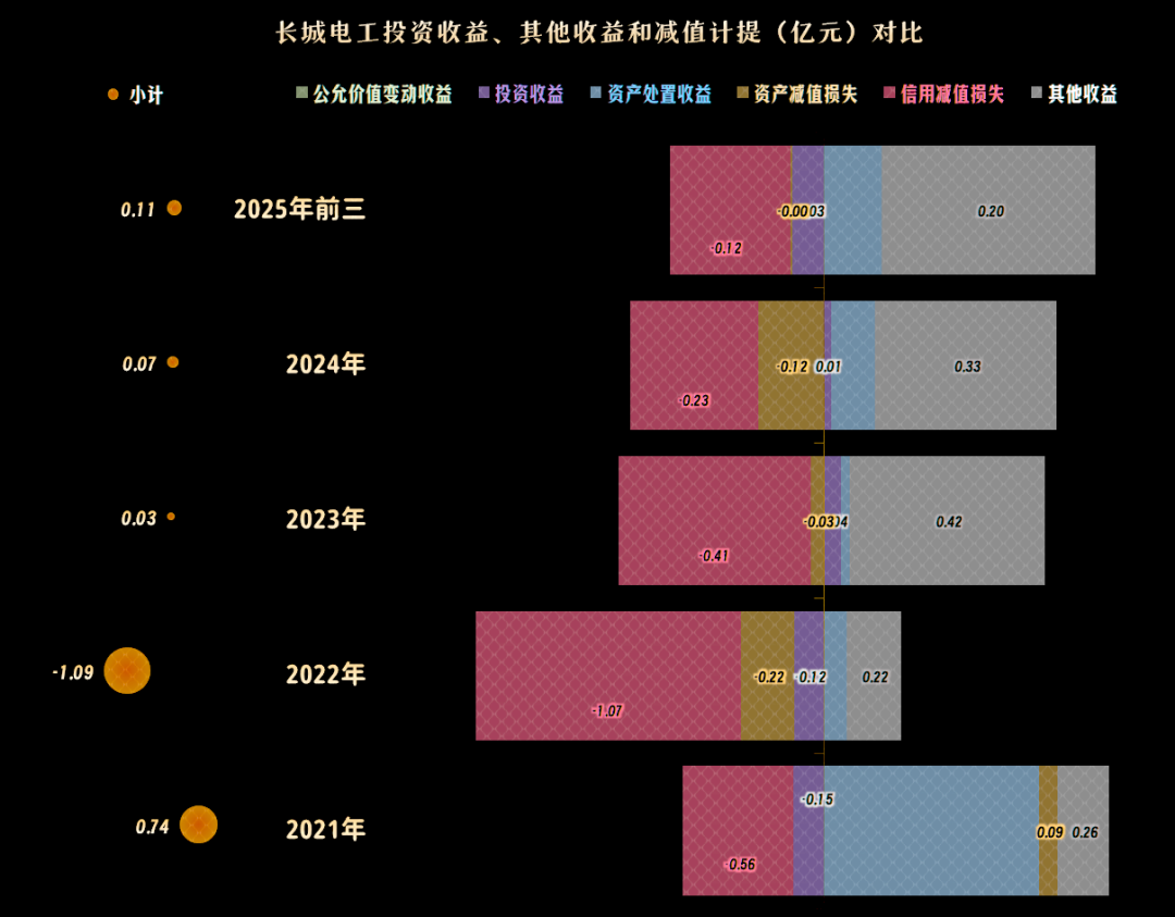 在其他收益方面,2021年有大额净收益,2022年成了大额净损失。损失项主要是“信用减值损失”,收益项除了政府补助之外,个别年份还有金额不低的“资产处置收益”。由于主营业务那边的影响更大,这方面我们并不想细看,特别是从2023年以来,这方面的影响也很小。