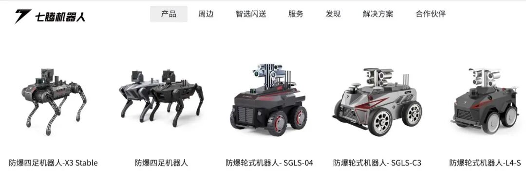 时代周报获得的七腾机器人介绍材料显示,其四大核心产品包括防爆四足机器人、防爆轮式机器人、防爆挂轨机器人、防爆履带机器人,核心应用场景包括石油化工、氯碱行业、天然气加工等各类高温高压、有毒有害、易燃易爆、危险物生产、仓储环境,为中石油、中石化、中海油、中化集团、巴斯夫等海内外知名企业提供产品服务和解决方案,已开拓欧洲、非洲、东南亚、西北亚等海外市场。