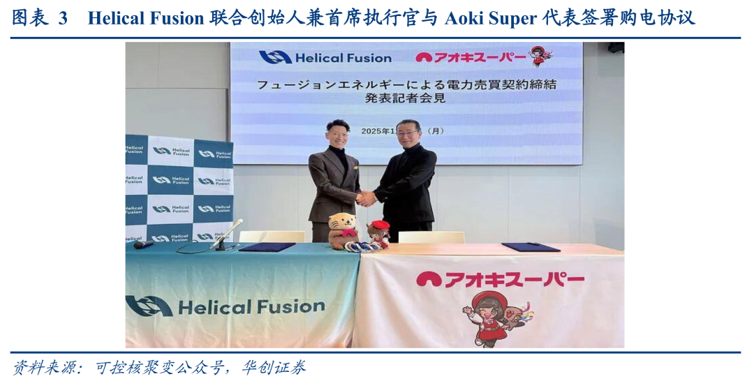 12月8日,日本聚变初创企业Helical Fusion与青木超市株式会社(Aoki Super Co., Ltd.)签署购电协议(PPA),该协议的签署具备里程碑式的重要意义,购电协议为聚变项目提供了稳定的市场预期,同时倒逼技术研发更聚焦实用性与经济性,开创了“需求侧驱动技术落地”的新模式。