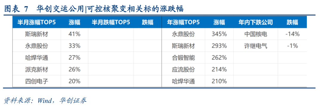 2)永鼎股份:公司旗下的东部超导主营产品是第二代高温超导带材及超导应用产品,可应用于高温超导带材业务可用于磁约束可控核聚变领域,