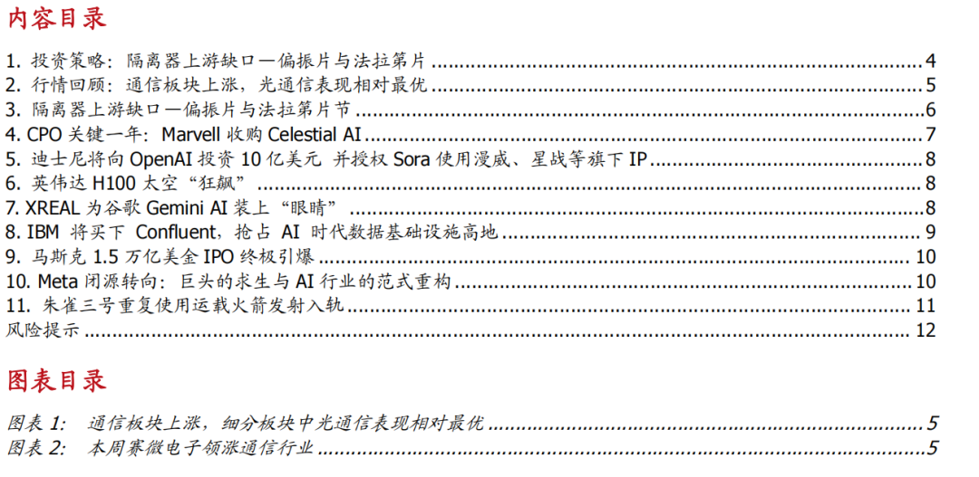 我们在上周周报中提示了光隔离器的投资机会,它是光模块的关键无源器件,其核心工作原理依赖于偏振片与法拉第片的组合。当前产业链上游在这两类核心元器件的制造,尤其是高端法拉第磁光材料方面,存在显著的技术依赖与供应缺口,已成为制约相关产业发展的瓶颈。