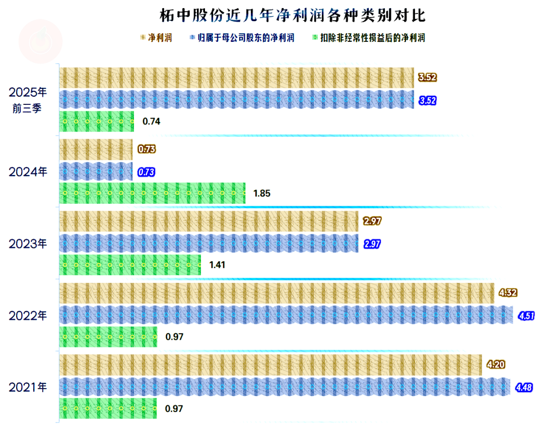 如果看不同类别的净利润,2025年前三季度的“扣非净利润”表现就没有那么优秀了,2021年和2022年的表现也是如此,但其整体盈利水平在同行中,仍然算是较好的。