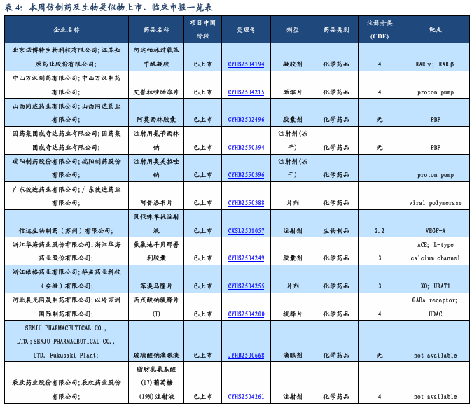 3.2. 仿制药及生物类似物上市、临床申报情况