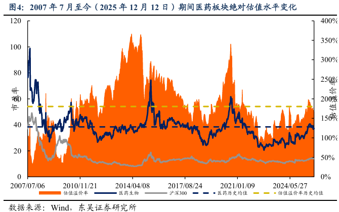 4.1. 医药市盈率追踪:医药指数市盈率为37.11倍,较历史均值低1.34