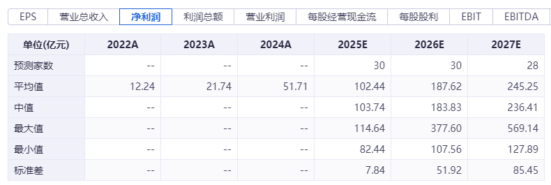 据同花顺iFind统计,6个月内共30家机构对中际旭创进行盈利预测,其中,调高26家,调低1家。2026年净利润预测均值为187.62亿元,最高预测值为377.6亿元。