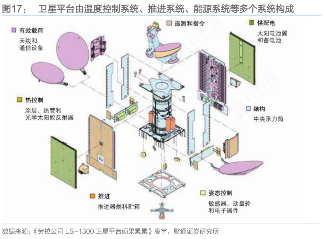 从产业链角度看,卫星制造可分为卫星平台(结构、电源、姿控、热控、测控等分系统)和有效载荷(通信、遥感、导航等功能模块)两大核心部分。