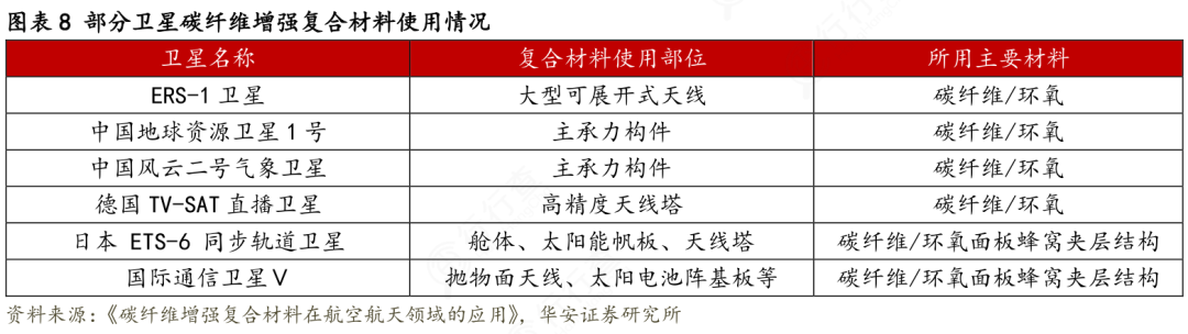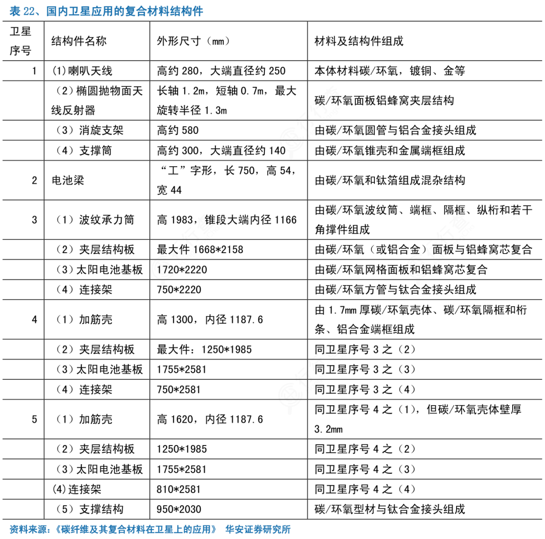 卫星用到的特种金属合金包括钛合金、铝合金、高温合金、镁锂合金等,具备轻质、高强、耐高温、抗腐蚀等特性;先进复合材料以碳纤维增强聚合物(CFRP)、陶瓷基复合材料为代表,用于太阳能帆板基板、天线反射面、卫星桁架等,可显著降低结构重量。