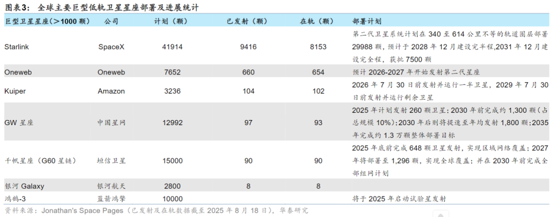 中国星网规划约13,000颗卫星,拟2030年前完成主要组网;千帆星座分三期部署,最终规模15,000颗;鸿雁星座规划超10,000颗,提供通信与导航增强服务。