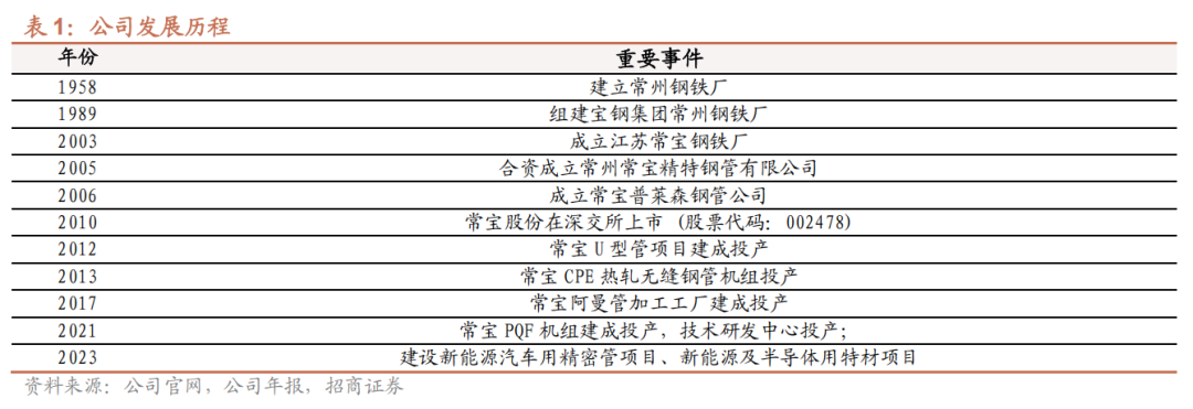 1、历史沿革:前身为常州钢铁厂,目前是国内头部特种无缝钢管企业