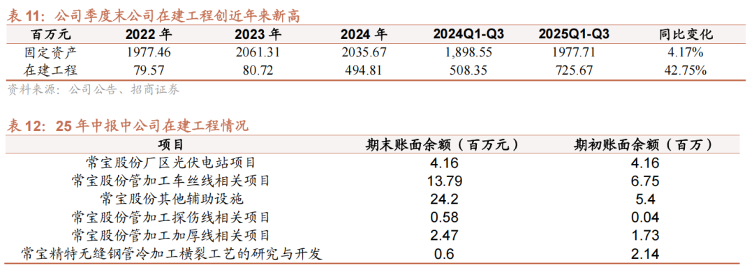 公司正积极扩产。目前公司固定资产19.8亿元,三季度末公司在建工程创近年来新高,达到7.3亿元。中报中主要的一项为常宝普莱森特材项目中报在建工程该项目余额5亿元。根据24年10月25日公告,本项目固定资产投资估算为7.03亿元。11月21日,该项目已经正式竣工。