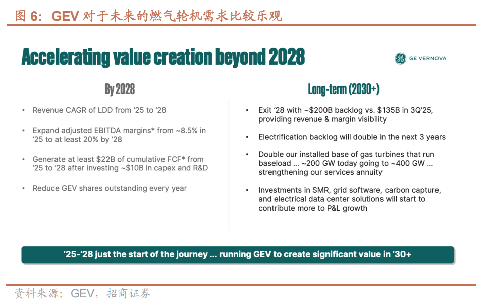 全球燃气轮机供应格局集中,龙头扩产开始积极。三菱重工、GEV、西门子能源三家在全球燃气轮机市场的份额预计为70-80%。龙头过去几年很少扩产,在手订单严重积压,北美数据中心建设进一步加剧了供需瓶颈。根据GEV最新指引,其燃气轮机新订单已排产至2028年以后,并且2029年剩余可售产能已不足10GW。公司正在加速扩产,预计2026年第三季度实现20 GW产能(新增4GW),并在2028年实现约24GW的产能。