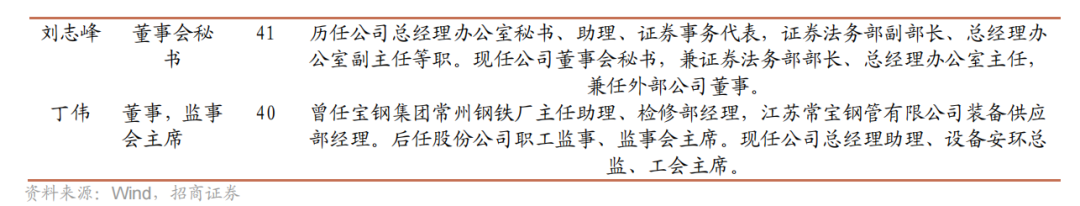 公司当前管理层为常宝有限老班子成员。董事长曹总,历任宝钢集团常州钢铁厂设备科和热轧车间管理人员、企管办副主任、财务科副科长、营销部经理,改制后拿到公司股权,并一直持续至今担任公司董事长。副董事长韩总,曾任宝钢集团常州钢铁厂三改办秘书、党办秘书,目前是公司副董事长、总经理,三季度直接持股1.23%。其余公司高管,戴正春、刘志峰、陈松林、丁伟等也均为长期在公司担任要职,成长起来的高管。