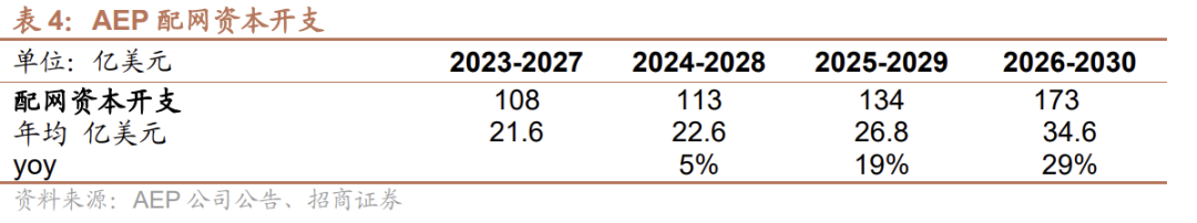 美国配网改造升级需求迫切,运营商对配网的资本开支有明显提升。以AEP为例,其拥有美国最大的输电系统(4万英里输电线路),并运营配电线路超过22.5万英里。根据其2026-2030年投资计划,配网资本开支预计173亿美元,年均约35亿美元,比此前2025-2029年计划同比增长29%。配网投资主要用于系统升级、电网现代化改造等来提升用电可靠性。