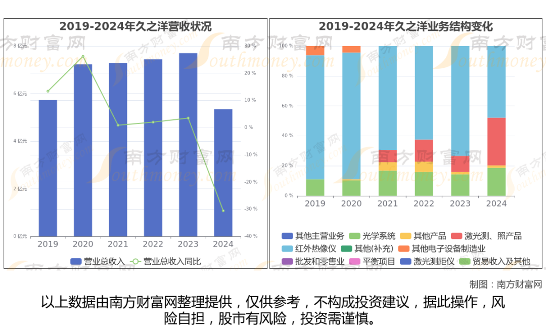 久之洋于2016年6月2日在深圳证券交易所上市,公司主营业务为红外热像仪、激光类、光学元件及膜系镀制、星体跟踪器的研发、生产与销售。