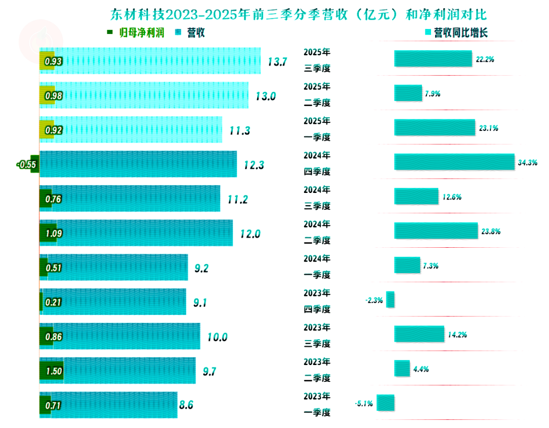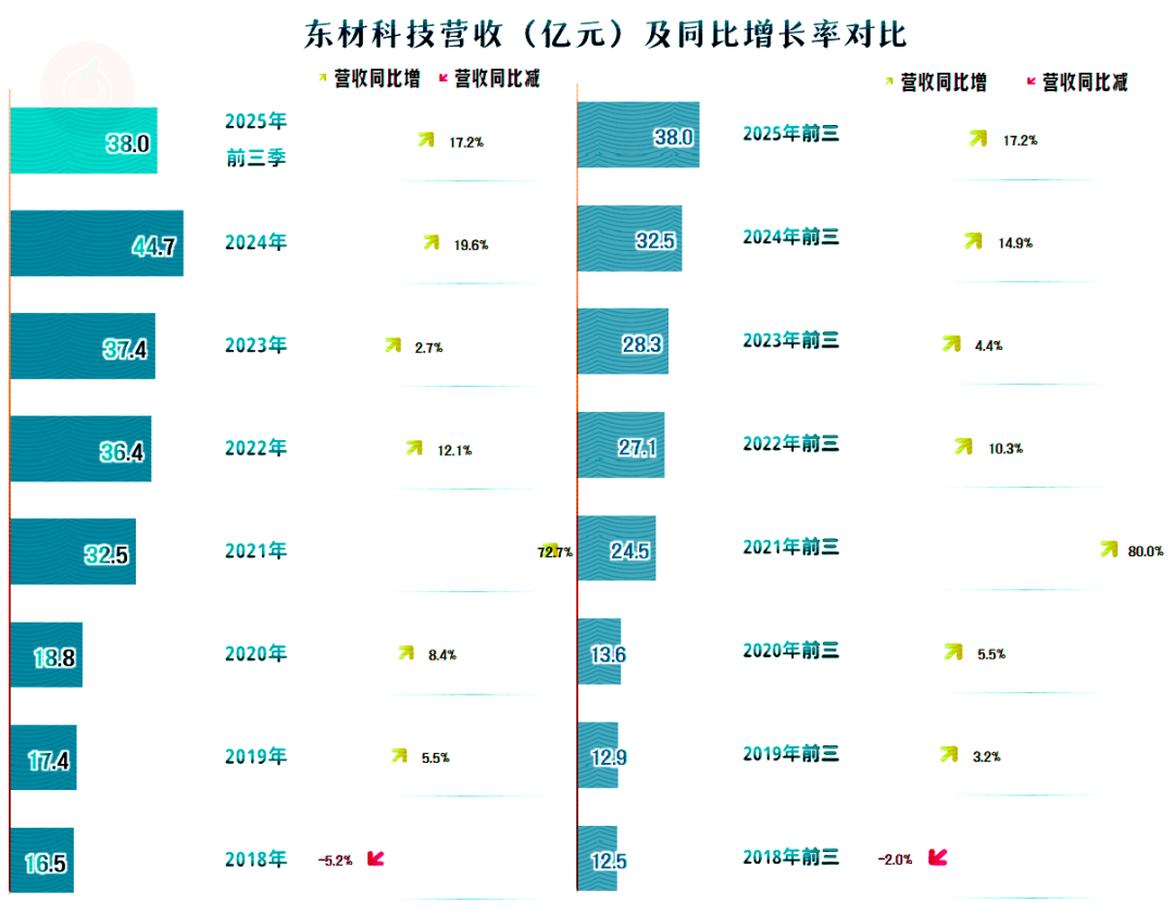 2025年前三季度,东材科技的营收同比增长了17.2%。这是多年增长的延续,也毫无意外的继续刷新着前三季度的营收纪录。