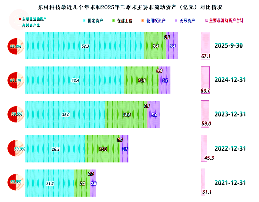 经过长期较大规模的固定资产类投资,东材科技的经营性长期资产和固定资产还是有明显增长的。主要的增长在2022年末和2023年末;最近两个期末仍在增长,但速度比前几年慢了很多。